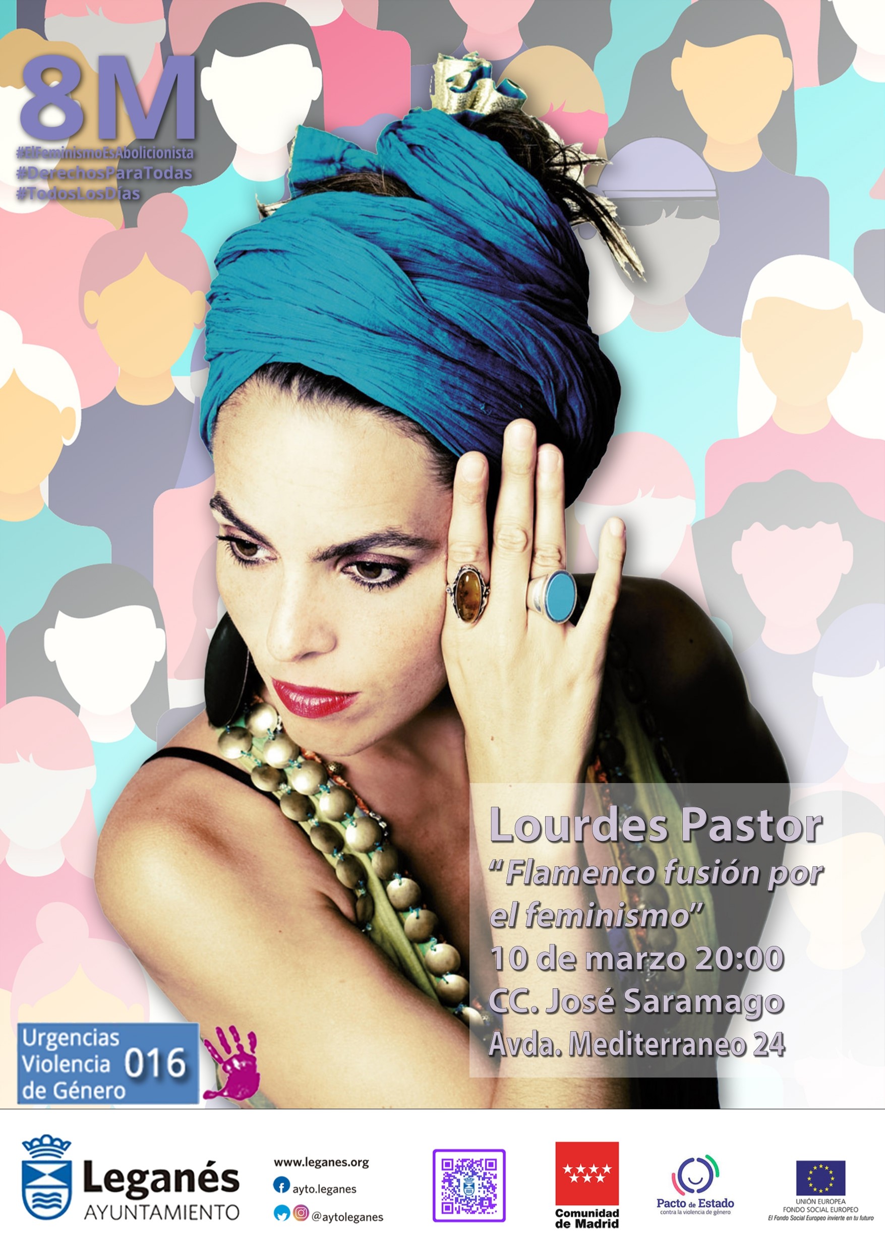 20:00h. Concierto de Lourdes Pastor. Cantante de flamenco-fusión con letras feministas. Entrada gratuita a recoger en el Centro Rosa Luxemburgo C/ El Charco 23 hasta el mismo día y una hora antes taquilla.
